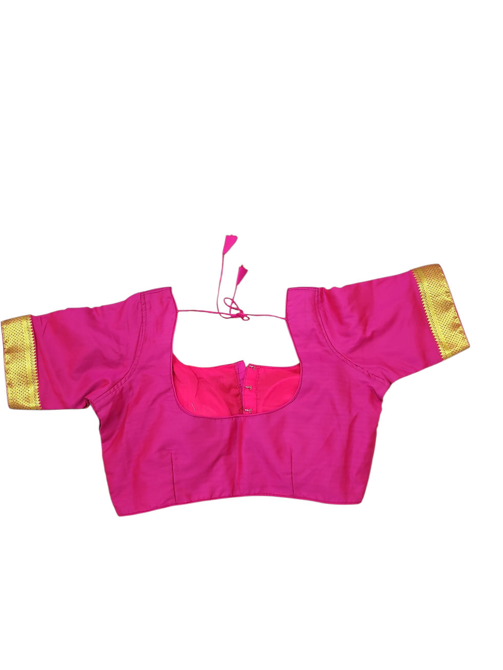 Fuchsia Pink Raw Silk Saree Blouse with Golden Zari Border – Ready-Made Size 40